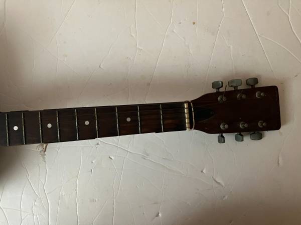 • Lower dreadnought body distortion – The lower right side of the body shows visible distortion. This structural irregularity does not make the guitar unrecognizable, but it is notable and may require inspection by a luthier depending on the buyer’s intended use.