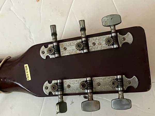 This guitar features a traditional acoustic top paired with an early electric pickup setup, allowing it to be played both acoustically and amplified. The body retains its vintage finish and natural patina, consistent with instruments from this era. The neck is comfortable and playable, and all electronics, including the two control knobs, appear intact.