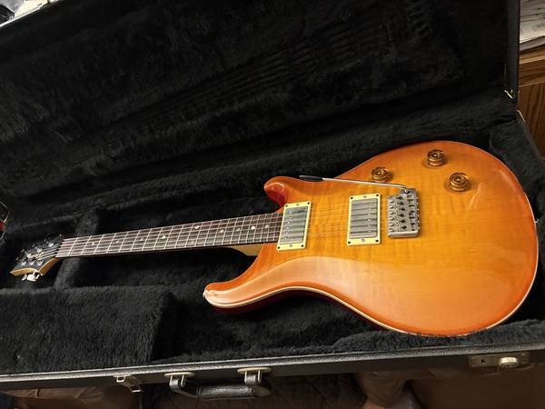 2002,Usa Paul Reed Smith CE22 With Tremolo System..Amber Flame Maple Top&HSC,Clean Guitar For Its Age..Older Model With All The Contours..More ON The Slimer Side Neck..NOT FAT,Moon Inlays..Recently Set Up To Play Like Butah..with Hardshell Case..Sweet Playing/Sounding/Looking Guitar..PRS AT ITS BEST !! VOLUME/TONE/ROTARY SELECTER KNOB.,$1499..