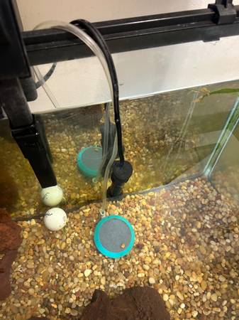 29 Gallon Fish Tank with Setup - $150 30Lx12Wx18.75H Includes: - Gravel - Lava rocks decor - Aqueon Preset Aquarium Heater, 100-watt - Tetra Whisper Non-UL Air Pump for Aquariums, Size 020 -...