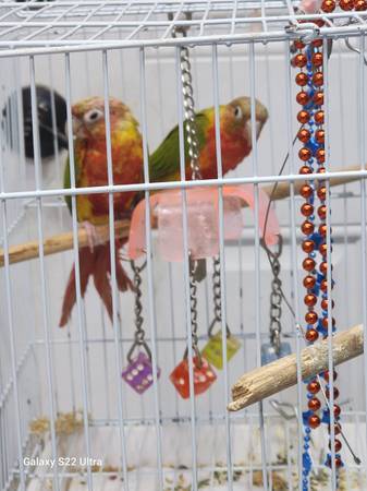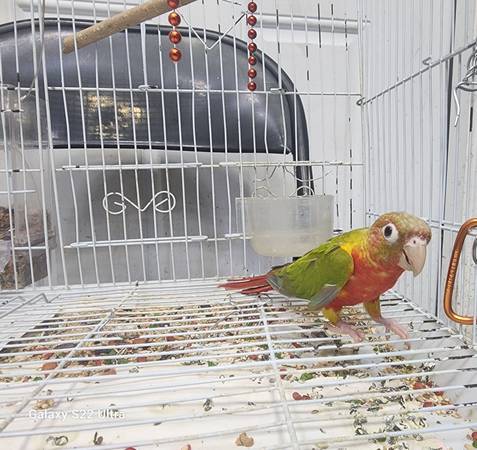 Rehoming my red factor green cheek pair not dna bonded pair 1 year old not tamed comes with cage rehoming fee $500 for pair
