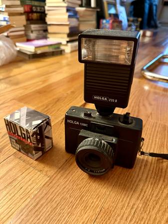 Holga 135BC 35mm Film Camera + 235B Flash + Lens and Filter Holder. Adjustment ring sticks, hence the price.