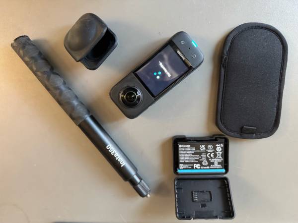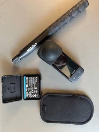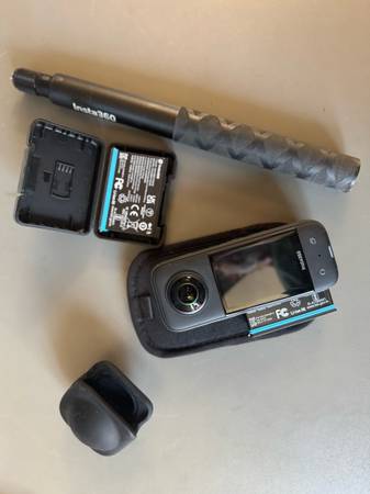 This is a lightly used insta360, with a 128 gb sd card, a selfie stick, extra battery, lense cap and case for 250 or best offer.