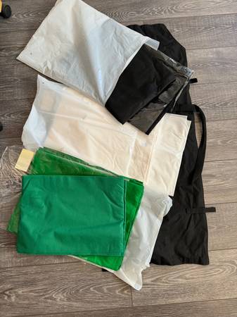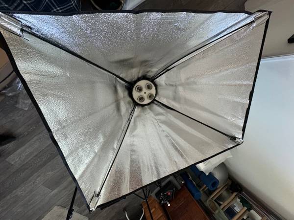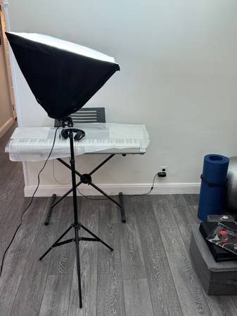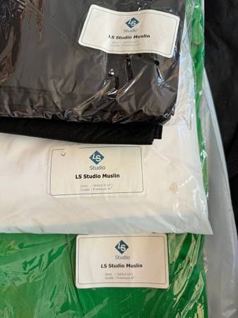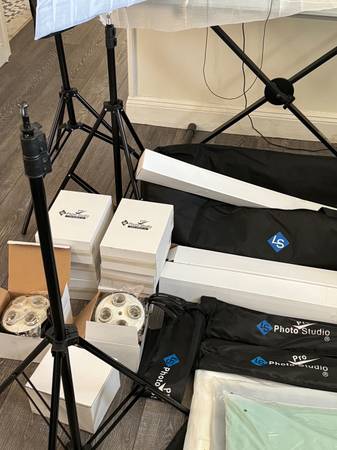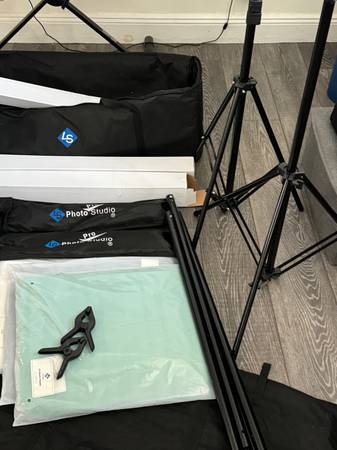New LS Photo Studio Pro Lighting and backdrop kit complete with case and everything you need. Three tripods with lights can raise each light box up to 8' high. (There are three, but I only displayed one for the picture). Each light box takes 4 bulbs, which are all also included. There are three different high quality Muslin backdrop cloth packages, each with two different cloths of the same color. The backdrop boom opens up to about 9' wide and can be raised up about 8' as well. There are 12 brilliant bright light bulbs included, and everything packs into the duffle bag. I even have the cardboard box. Selling the entire package for $175. Located in Sheepshead Bay area near Marine Park.