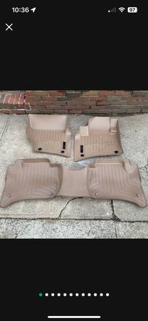 I have a used set of Porsche Macan Weather tech floor mats in beige/tan color. These are great for the snow and keeps the rugs dry due to the design of the mats. This set has 2 front, 1 rear mat that covers the whole rear floor and a trunk liner. Last photo shows a little damage on the trunk liner. Please look at all photo. Should fit all models of macan