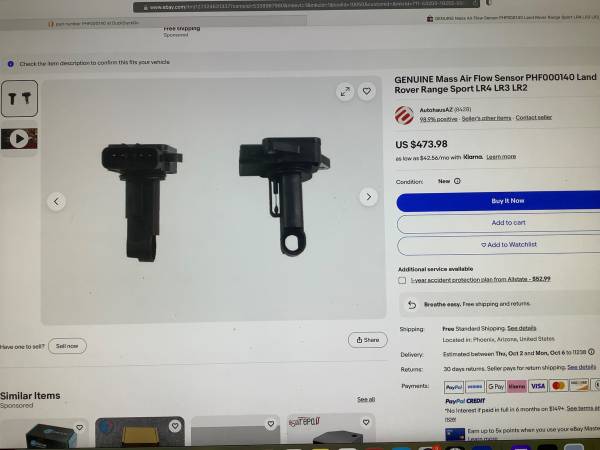 Selling a set of (2) MAF Sensors for Land Rover part # PHF000140 made in Germany official land rover part brand new in their boxes for a fraction of the original cost. leave a phone number for contact and ill get back to you as soon as i get home these messages go to my ipad at home not my cell