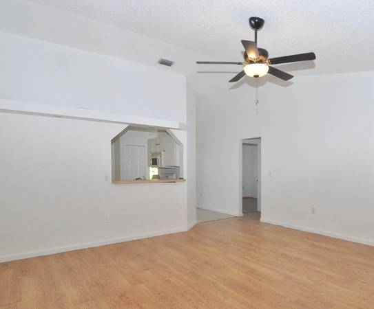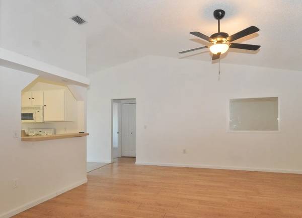 Located in Palm Bay, Florida, on Reading Street, about 5 miles from the beach, and 80 Miles from Orlando & Disney Theme Parks. There are 2 shopping centers near by: The Bayside Crossing Shopping center (2.5 Miles) and The Shoppes at Cypress Bay (4.5 Miles), that both have a big supermarket. This 3 bedroom/2 bathroom fully detached Ranch style home is built on a 1/4 Acre lot, and has a BIG garage with powered door, a private driveway, and a BIG backyard. The Primary Bedroom has a private bathroom, the living room has a cathedral ceiling, and there is a Florida room in the back. The house is in pretty good shape, and move-in ready.