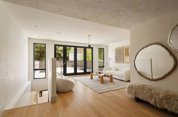 Located in Williamsburg within a short walk to McCarren Park and the L subway line. It is a brand new HUGE 4 story single family Townhouse, 22' wide, about 5,000 Sq Ft in total, with an INDOOR GARAGE, PRIVATE ELEVATOR, a nice backyard and a couple of terraces. The configuration includes 2 floors that are dedicated for the living space, and the upper 2 floors for the bedrooms section. The lower part contains a BIG living room with VERY HIGH CEILING, a formal dining room, a BIG chef's kitchen that includes a BIG island with top of the line aplliances, and a BIG family room, and 2 powder rooms. The upper 2 floors contains 4 BIG bedrooms & 3 full bathrooms, includes a HUGE Primary Bedroom with walk-in closet and a BIG bathroom, an office, and a laundry. The high-end finishes includes hardwood floors throughout, exterior glass wall in the back, central hvac system,built-in speaker system, high quality windows, and beautiful bathrooms with glass doors & expensive tiles.
