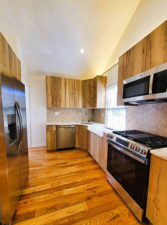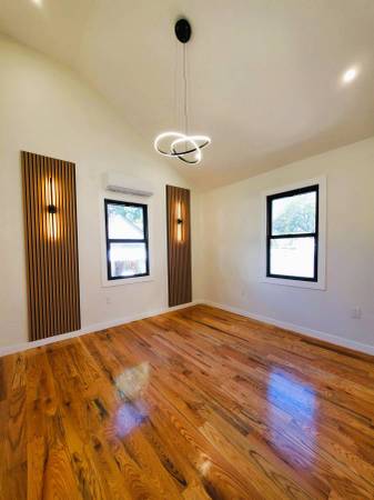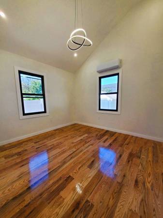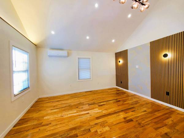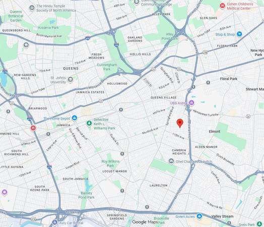 Located on a beautiful quiet tree-lined street, a couple of blocks from the Cross Island Pkwy in the Queens Village section of Queens, next to Cambria Heights, on 113th Rd. It is a very nice and quiet neighborhood with mostly detached single family homes, conveniently located with easy access to Cross Island & Southern State Parkways. A short drive would take you to the Belt Pkwy, JFK Airport, and Green Acres Mall. The newly built amazing Belmont Park Village Mall is nearby, on the other side of the Cross Island Pkwy. This fully detached lsingle family house is has a wide long private driveway that can fit several cars, a detached garage, a full finished basement with asecond separate entrance, and a big backyard. It is a single story Ranch style home, so no need to go up & down by the stairs. It has 3 bedrooms and 2 bathrooms, includes a Primary Bedroom with a private bathroom. The house is fully renovated and move-in ready. It has high ceiling in the living room and 2 of the bedrooms, a pull-down stairs to the storge space in the attic, and a full finished basement with 3 rooms with windows, and a bathroom. The house has a new HVAC split-system, and each room can individually control its own temprature.