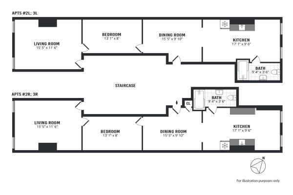 – 4 Apartments (each is 2BR/1BA with Full Living Room, Eat-In Kitchen)