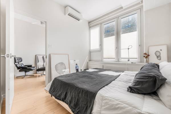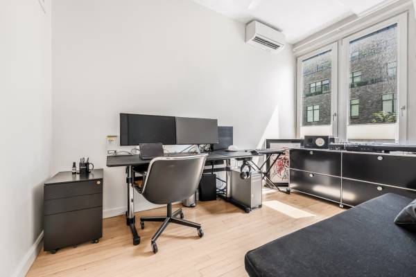 Set on a quiet, tree-lined residential block, this two-bedroom Boerum Hill loft seamlessly blends luxury and practicality while keeping HOA fees refreshingly low. Only moments from Brooklyn’s premier conveniences, the naturally sun-drenched home features powerful yet quiet split-system HVAC throughout, an in-home LG washer/dryer and a large bonus office just down the hall! Enter inside to find a magnificent open-concept layout with hardwood floors, nearly ten-foot ceilings, and an abundance of natural light pouring through oversized tilt-and-turn windows. Moving through the spacious open dining, living, and kitchen you will notice generous closet/storage space, beautiful finishes and design, and a thoughtful split-bedroom configuration separating the two generous bedrooms for optimal privacy. On the ground floor, IXV Café—a neighborhood favorite for coffee, tea, and locally baked treats—doubles as an ad hoc art gallery and community hub. The buildings sits only minutes from Atlantic Terminal’s (transportation-and-shopping nexus), BAM, Barclays Center, Whole Foods, Apple, and DeKalb Market, with Brooklyn’s best restaurants, bars, and venues just a stroll away. Commuting is effortless with nearby access to the LIRR, 2/3, 4/5, B/D, N/Q/R/W trains at Atlantic Terminal, the A/C trains at Lafayette, and the G train at Fulton, plus bus lines B63, B65, B41, B37, and several others within easy reach.