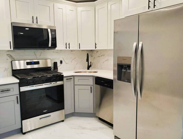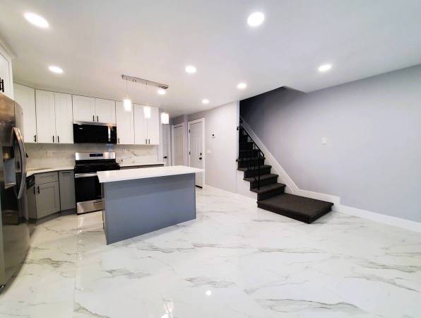 Located on Van Siclen Ave off Flatlands Ave in East NY, close to Canarsie, Starrett City, and the Gateway Center (Aldi supermarket, BJ'S, Target, Marshall, Home Depot, etc.). This fully renovated 3 story Brick 2 family building has an additional full & finished basement, and covered parking space for a couple of cars in the back. The house configured with a beautiful 4 bedroom/2 bathroom owner's duplex apartment with a big balcony' above a 2 bedroom rental unit. The finished basement has a separate entrance, and it is completely above ground in the back, with a wide screen door.