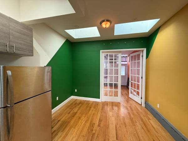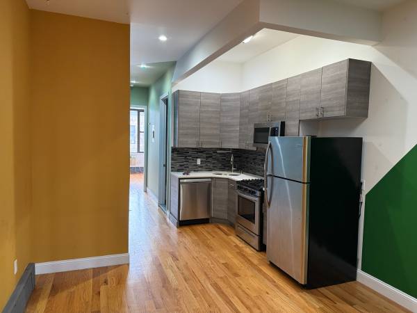 265 Melrose Street is a renovated, well-kept building located in central Bushwick. The apartment features a modern layout with hardwood floors, recessed lighting, high ceilings, large windows, and strong natural light with balcony/patio. The kitchen includes full-size stainless steel appliances, sleek cabinets, and a dishwasher. Bedrooms are properly sized for queen or king beds, and the bathroom is updated with a deep tub and modern tile. There is both closet and overhead storage, and heat and hot water are included. The building has secure entry, is professionally managed, and accepts online rent payments and maintenance requests.
