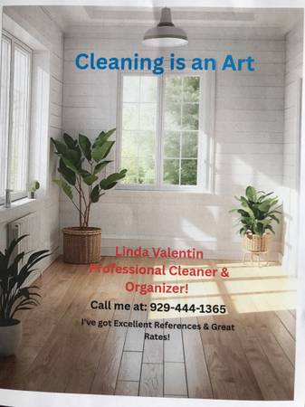 I’m experienced in cleaning and organizing professionally for the past ten years who can solve your cleaning needs. If you’d can, please send me pics of the areas you would like to be cleaned and we can get started on this journey for you. Reasonable rates and excellent references available. Thank you.