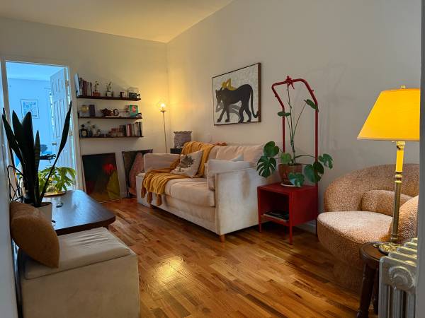 I’m looking for someone to sublet my bright bedroom while I’m away for the holidays. The space has great light, a comfortable living room setup, a fully furnished kitchen, and is close to plenty of cafes and creative spots.