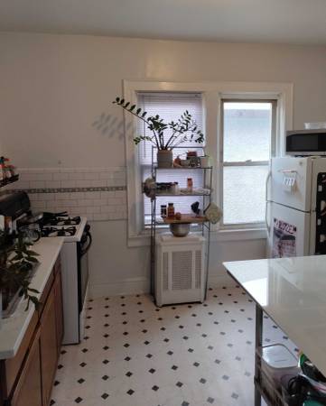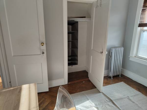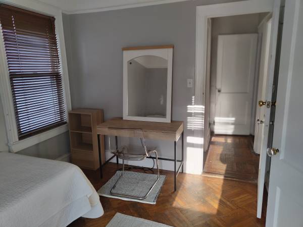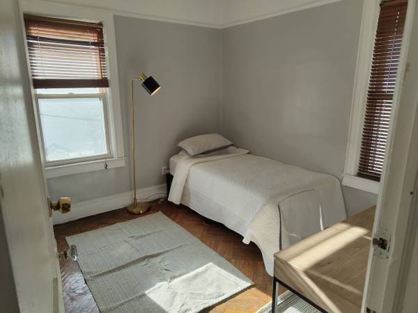 The room is aprox 10x10sq ft with 2 bright windows. There will be a bed and bed frame, desk, chair, closet. You’ll have full access to spacious shared areas including a full kitchen, living room, dining room, and a shared bathroom.