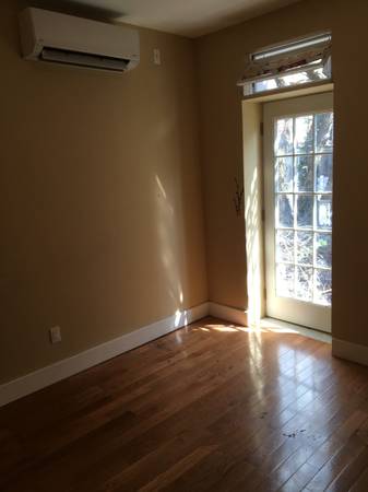 Room offered has an above average height large closet, also Room has window Door overlooking Garden with lots of light. Wood floor. Heat/Air conditioning unit. Private door/entry to private 'Backyard/Garden'!