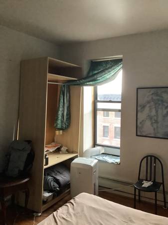 It's $1475/month+$25/month for internet=$1500 total. All other utilities included (excluding AC, which is an additional $25/month if you use it in the summer). The room itself is overlooking Malcolm X Blvd and gets a ton of natural light w/ a great unobstructed view of the sky. The room is spacious and large sized. There is a modestly sized closet in the hall for your use as well as some additional storage space in the apartment if needed. The pictured bathroom would be shared with one other person, myself. The other roommate has their own private bathroom. The apartment itself is relatively large(4 bedroom), as you can see from the living room/kitchen shots.