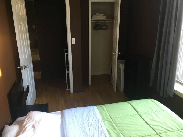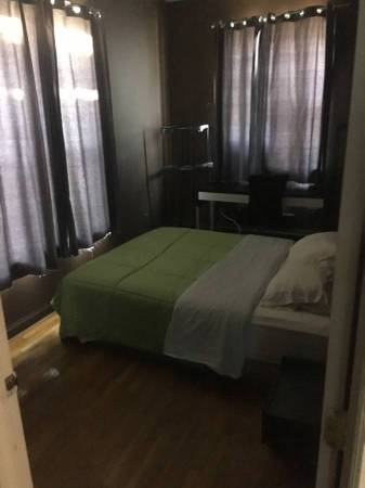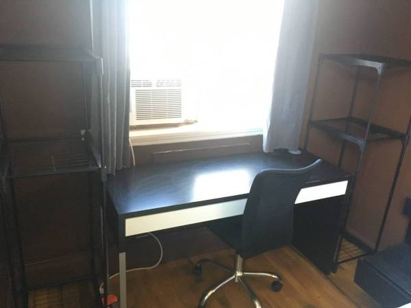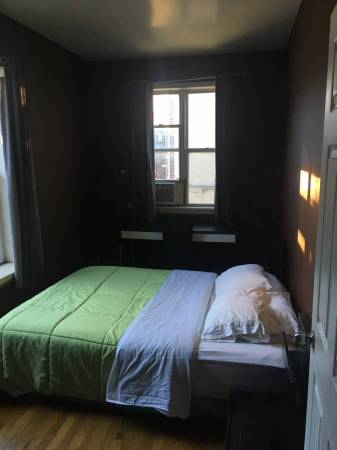 The room is large by NYC standards (13x11ft), shared bathroom with one roommate, ample closet space, and furnished (queen bed, desk, nightstands, dresser, mirror, linens and towels, 36" TV, pillows, ac unit). Roommates very rarely use the common areas, so you will mostly have the apartment mostly to yourself.