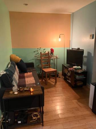 It is a two bedroom apartment , you would be sharing it with a laid back roomie in her mid thirties, creative type , work in the restaurant industry to pay the bills.