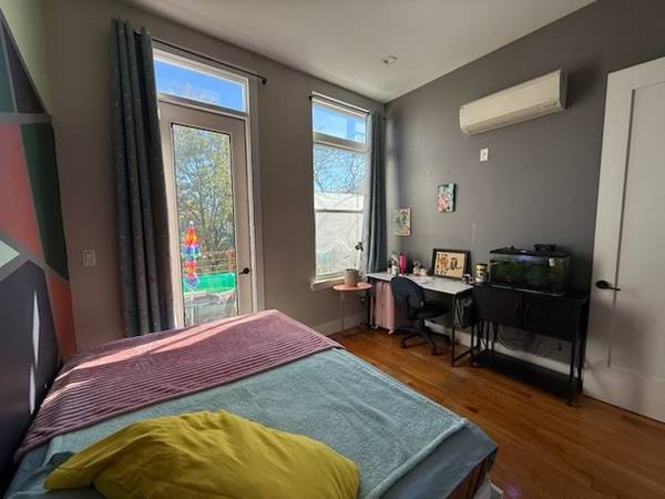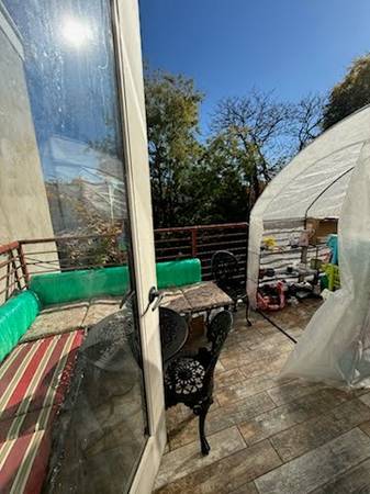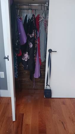 The kitchen has a breakfast bar and is equipped with an electric stove/oven, a microwave, a toaster, various cookware, a dishwashing machine, and of course a refrigerator/freezer. There is a washing machine and a drying machine in-unit. The living room has a large television, a couch and loveseat, and a skylight. Each room has its own remote-controlled AC/heating unit. There is a door to an outdoor balcony in two of the rooms (including yours), and there is a ladder on the balcony that goes to the roof. There are bike racks in the foyer area. In front of the house there is a small gated courtyard which is shared with the lower unit. The room features a full-sized mattress and a large closet.