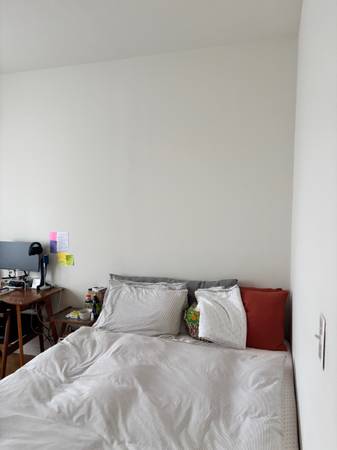 The Room: The available 12 x 12 ft bedroom is unfurnished ready for you to make it your own. It can comfortably fit a queen bed, a large desk, dresser, and more. Includes a spacious built-in closet for all your storage needs. Note: I have a dresser and misc. items that I’m happy to leave for you if you want them.