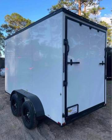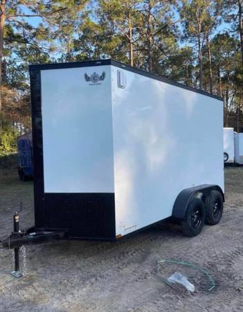 typically includes a rear ramp door, side door with flush lock and barlock, LED lighting, and a V-nose with 24" stoneguard a 7' interior height, a GVWR of 7000 lbs, and a payload capacity of around...