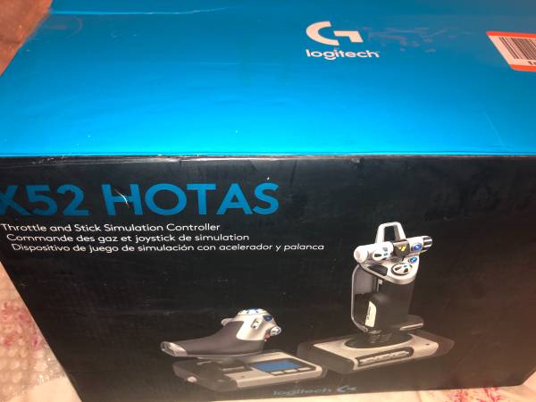 This is an open box and never used Logitech (Saitek) G X52 HOTAS Throttle and Stick Simulation Controller. It will work with current simulation games. It comes with all the pieces, including cables, booklet and suction cups. It also has holes, so you can mount it directly.