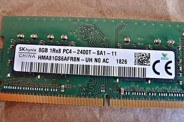 SK Hynix 8GB DDR4 RAM for laptop. Easily upgrades a slower older computer. Cash and carry only.