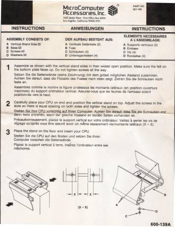 Computer CPU vertical bracket stand Manufacturer: MicroComputer Accessories, Inc.