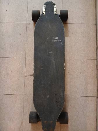 BOOSTED Electric Skateboard 38" x 9", wheel profile 11.5" wide Used, you will need to add a charger and a controller. Condition Fair. Please text to buy. Open to reasonable offers. You pick up!