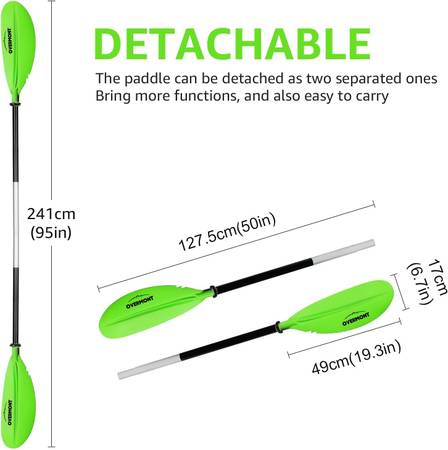 Overmont green kayak paddle 230cm (91.5") BRAND NEW $30. CASH ONLY, pick up from my front door, PRICE FIRM. Email me date/time of pick up, otherwise don't bother. Thanks.