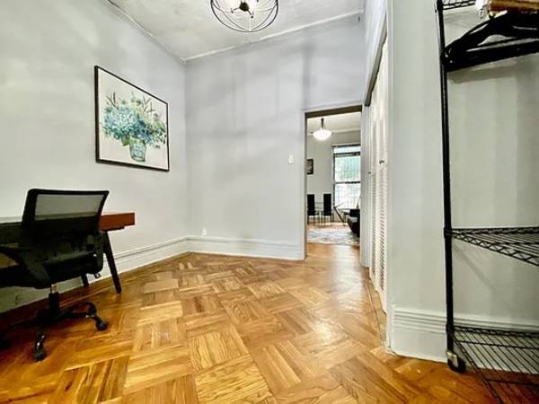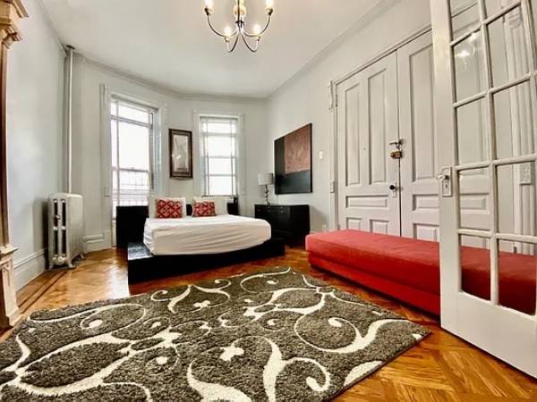 This truly special 1 bedroom Plus an office/ or possible bedroom apartment located on the parlor floor of a brownstone home. The apartment has original parquet floors, 12 ft beautiful tin ceilings, french doors, pier mirror and generous closet space. The subway is only 3 blocks away at the Nostrand Ave A train stop. *All utilities are included*. Close to transportation, shopping, super market, laundry, restaurants including all neighborhood favorites: Peaches Hot House, Eugene & Co, MetFresh, Blink, Foodtown. Can come furnished or unfurnished. Pets ok