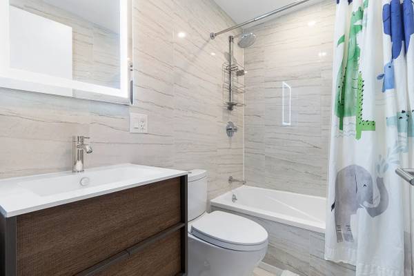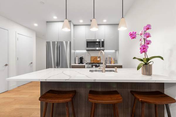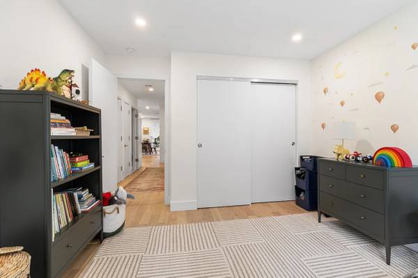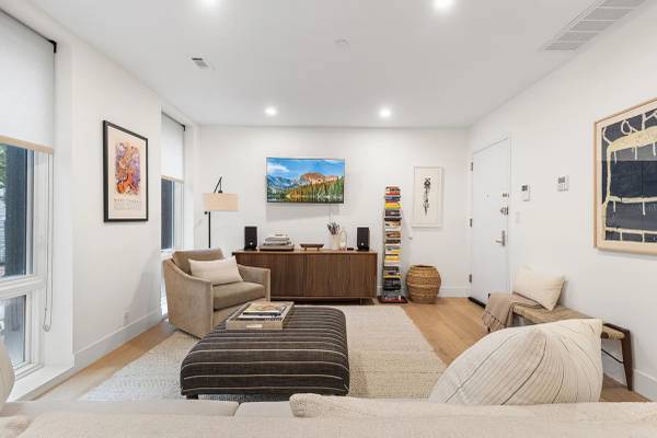 Welcome into this like-new, impeccably upgraded residence offering 30 feet of coveted frontage along 22nd Street—flooded with natural light from an expansive wall of windows. Every detail has been thoughtfully curated, with recent enhancements including refinished hardwood floors, fresh paint, custom window treatments, and statement lighting over the dining area and kitchen island. Enjoy top-tier finishes throughout, such as sleek Porcelanosa vanities, premium Grohe fixtures, Toto toilets, custom Onare kitchen cabinetry, striking Quartzite countertops, under-cabinet lighting, and a full suite of Bosch appliances. The kitchen is as functional as it is beautiful, complete with a pantry, garbage disposal, and in-unit washer/dryer for added convenience. The spacious primary bathroom offers a luxurious retreat with a large walk-in shower and double vanity. Both bedrooms are pre-wired for ceiling fans or additional lighting, and the home includes generous in-unit storage. Bonus amenities include a large private basement storage unit (5'5" x 9'3"), stroller parking in the welcoming lobby, and access to a shared roof deck with sweeping views of Manhattan to the north and Greenwood Cemetery to the south. Located just three blocks from Slope Playground and 15-minutes to Prospect Park, this home is zoned for the award-winning PS 10 Magnet School for Math, Science and Design Technology. It's also just a short distance to the acclaimed Hellenic Classical Charter School, a National Blue Ribbon School. Enjoy seamless access to the R and F/G subway lines, along with the charm of Greenwood Cemetery and the vibrant energy of South Slope. All within a meticulously maintained building and a warm, active condo community.