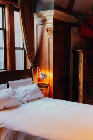 I'm subletting my dreamy apartment from Dec 12 to Jan 11. This is a spacious pre-war apartment built in the Renaissance Revival style. Double-height vaulted ceilings, plentiful 6' tall windows, fireplace, hardwood floors, original walnut moldings, stained glass details.