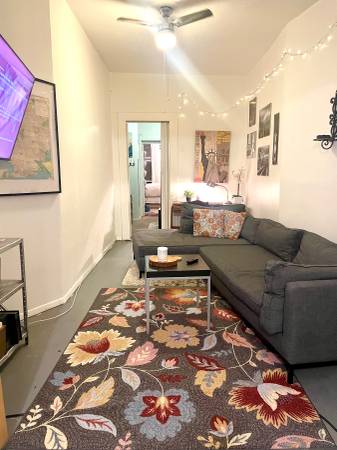 It is completely furnished in tasteful shabby chic and modern style. Includes bedding, fresh towels, kitchenware, mounted flat screen smart tv's, kitchen appliances. Ceiling fans, building radiators. Includes utilities, and hi speed wifi.