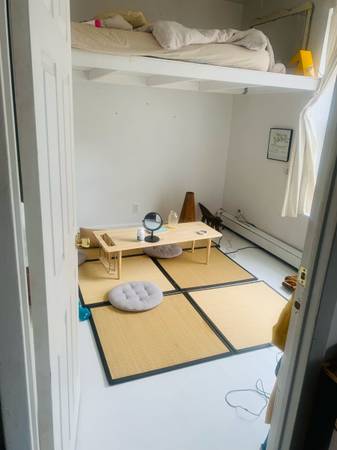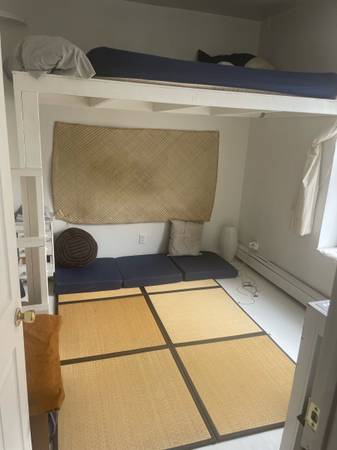 - furnished with basics : loft bed + desk .