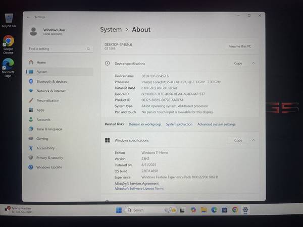 Screen appears to have one dead pixel. Otherwise, works perfectly. Excellent cosmetic condition. Windows 11 Home freshly installed. Comes with compatible replacement charger. Battery holds charge well. This is a great machine for gaming, streaming, photo and video editing, audio recording, or just browsing the internet. RAM is upgradable to 16GB.