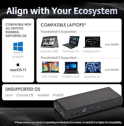 Compatible Devices: Windows 10/11 laptops with Thunderbolt 4 port, non-M1/M2 chip MacBooks running macOS 11 (Big Sur) or later