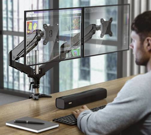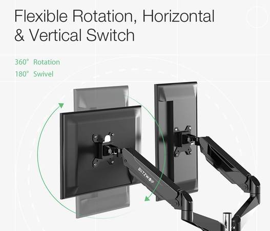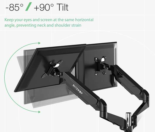 BlitzWolf® BW-MS4 Dual Monitor Stand with Dual Pneumatic Arms 32" Monitor Stand 360° Rotation, -85°~+90°Tilt, 180°Swivel, Adjustable Height and Cable Management