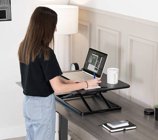 Single Top Height Adjustable Standing Desk Riser, Compact Sit Stand Desktop Converter for Monitor or Laptop, Black