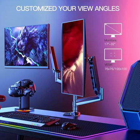 OPTIMIZED YOUR SCREEN CONFIGURATION & DESK SPACE: Freely place your monitors to side-by-side mode for daily work and gaming or stacking mode for programming /data analysis while freeing up much valuable desk space.