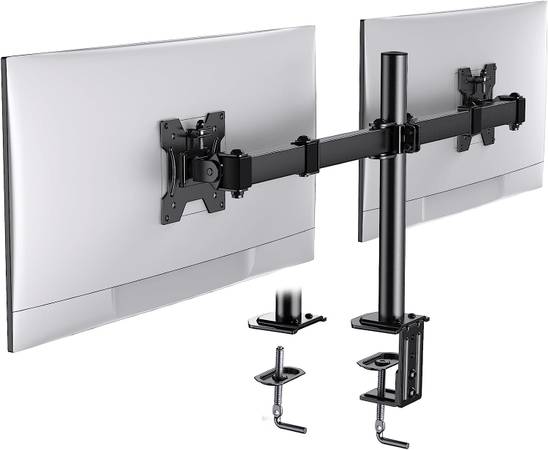 HUANUO Dual Monitor Stand Mount, Heavy Duty Fully Adjustable Monitor Desk Mount for 13-27 inch Screens, VESA Mount with C Clamp, Each Arm Holds 4.4 to 17.6lbs - HNCM7