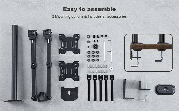 Effortless installation - The package of dual monitor mount includes all installation equipment