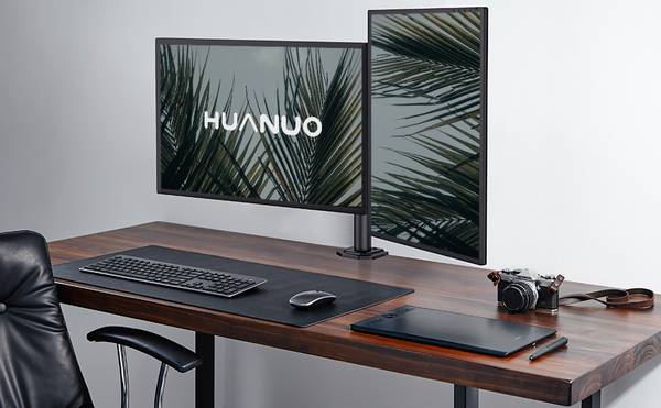 Monitor Stand Most Fits 13" To 27" Screens - HUANUO Dual monitor stand mount fitting two screens 13” to 27” in size and maximum support weight up to 17.6lbs per arm, compatible with VESA mounting hole 75x75mm and 100x100mm.