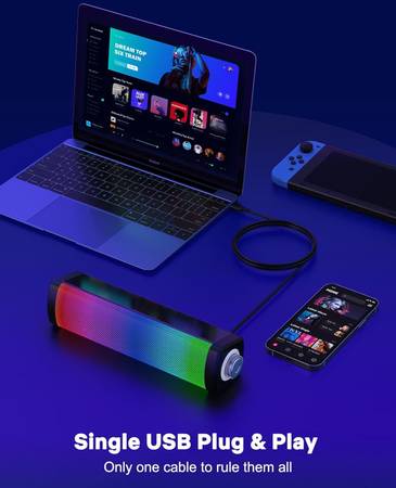 Single USB Cable & Plug and Play: Desktop speakers without battery and AUX cable. Only one USB cable for power and audio, plug and play. Avoid more cables that cause clutter on the table.