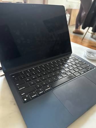 Mode A2681 (Apple MacBook Air 13-inch (M2, 2022). This model features an Apple M2 chip, a 13.6-inch display, and includes a Touch ID sensor. Color is midnight black and is in excellent condition.