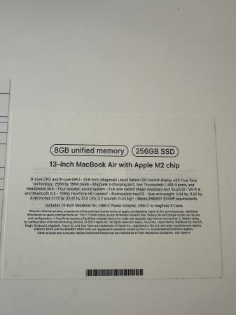 1 x MacBook Air laptop (13-inch) - Apple M2 chip, 8-core CPU, 8-core GPU, 8GB memory, 256GB SSD