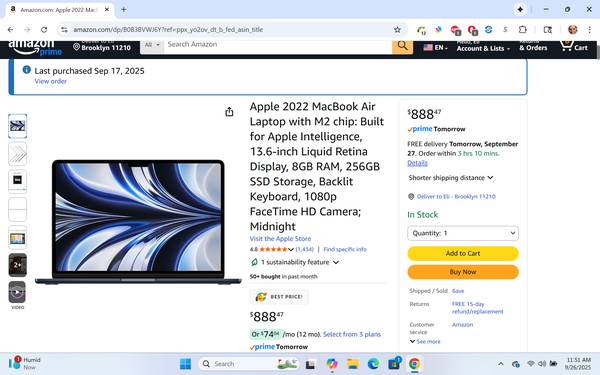 Apple 2022 MacBook Air Laptop with M2 chip: