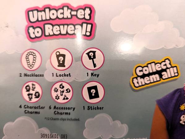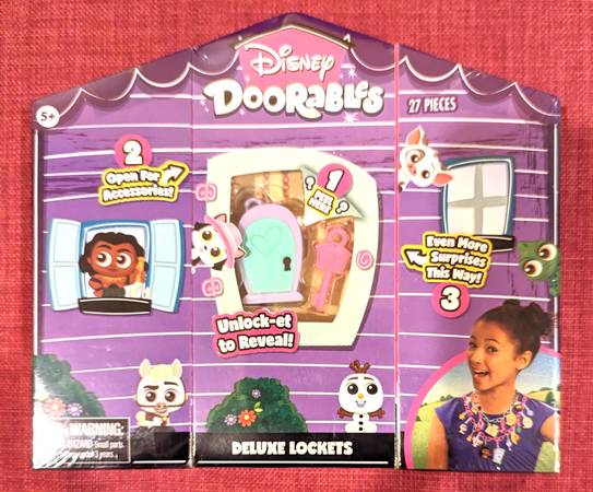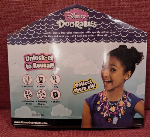 This listing is for a brand new 27-piece Disney brand “Doorables” deluxe lockets playset. Unbox all the surprise parts and use them to design your own charm necklace! Contains 1 locket, 2 necklaces, 1 key, 4 character charms, 6 accessory charms, 1 sticker, 12 charm clips, and a collector checklist. Ages 5+ suggested. Usually retails for over $20 for even a smaller size set. Brand new with original plastic shrink wrap, and packaging is in perfect condition. From a smoke-free and pet-free home. Would make a great gift for the holidays! Available for pick-up from Dyker Heights for $8 – please call or text show contact info
